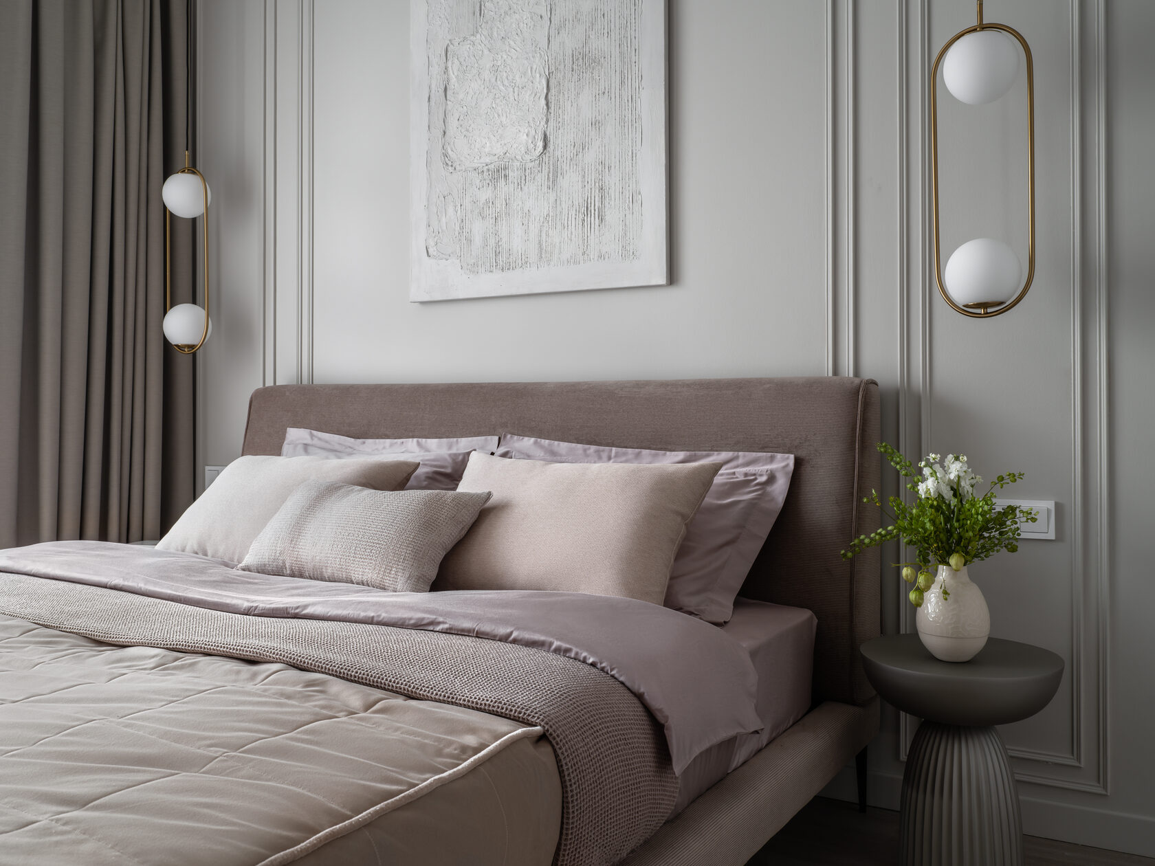 Яркий свет или недостаток естественного освещения — одна из главных ошибок в спальне. Синий свет от экранов гаджетов подавляет выработку мелатонина, гормона сна. Как улучшить сон в спальне? Установите диммируемые лампы с теплым светом, используйте шторы blackout для блокировки уличного света. Избегайте ярких LED-подсветок — лучше выбрать приглушенное освещение для спальни, чтобы комната способствовала расслаблению.